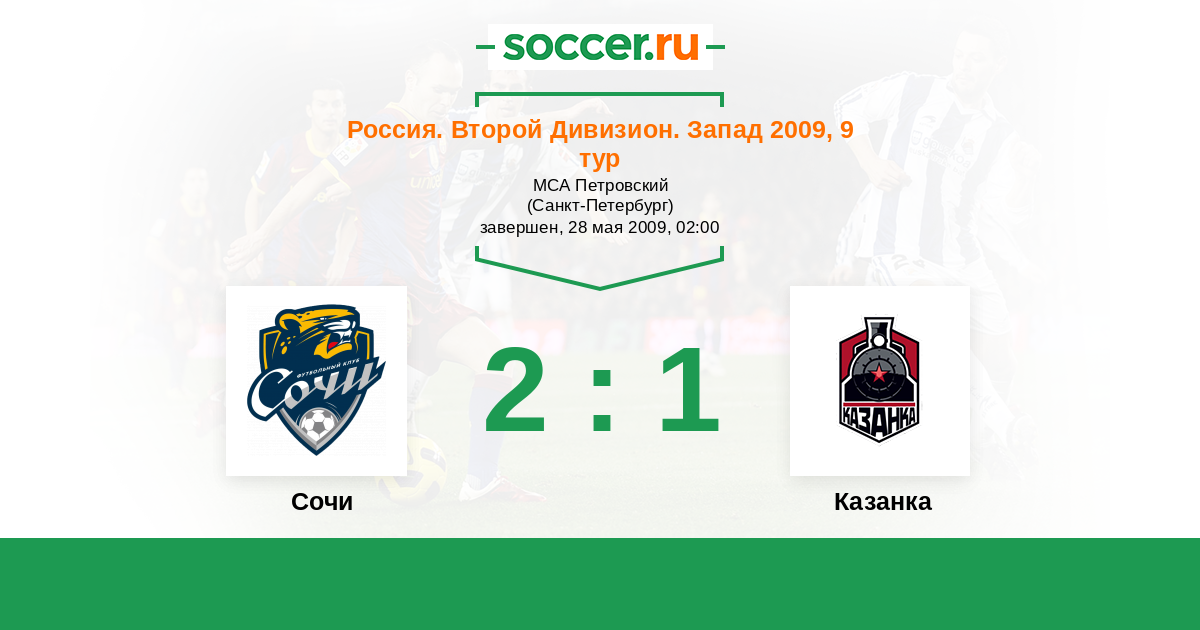 Россия. Вторая лига. Группа 2 10.09.2009 Локомотив-2 Логотип футбольный клуб Локомотив-2 (Москва) 3:1 Логотип футбольный клуб Динамо (Сочи) Динамо