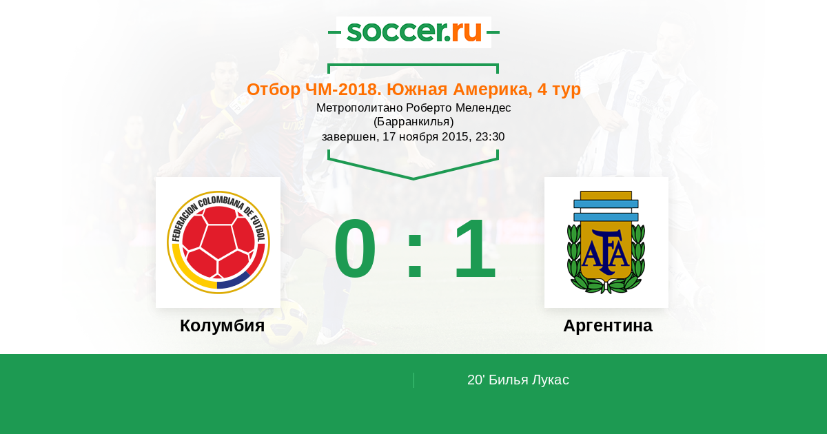 Протокол матча Колумбия против Аргентина