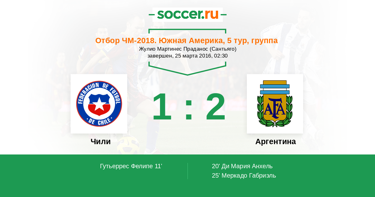 Протокол матча Чили против Аргентина