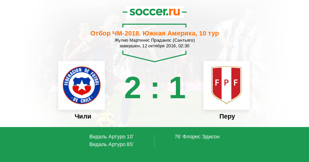 85' (2:1) Видаль Артуро (8) (Исла Маурисио (4))