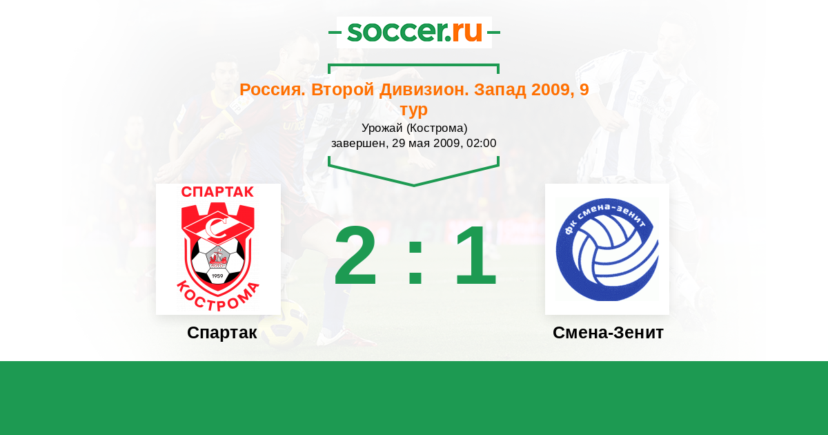 Россия. Вторая лига. Группа 2 11.09.2009 Смена-Зенит Логотип футбольный клуб Смена-Зенит (Санкт-Петербург) 1:0 Логотип футбольный клуб Спартак Кострома Спартак Кострома