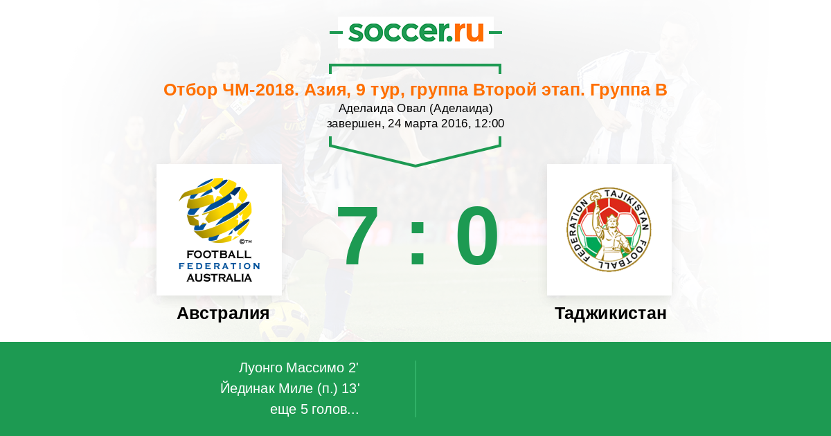 Протокол матча Австралия против Таджикистан