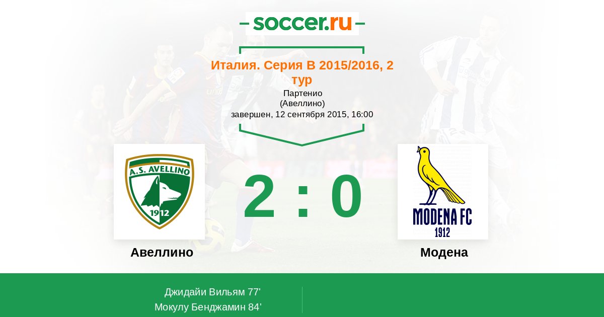 Протокол матча Авеллино против Модена