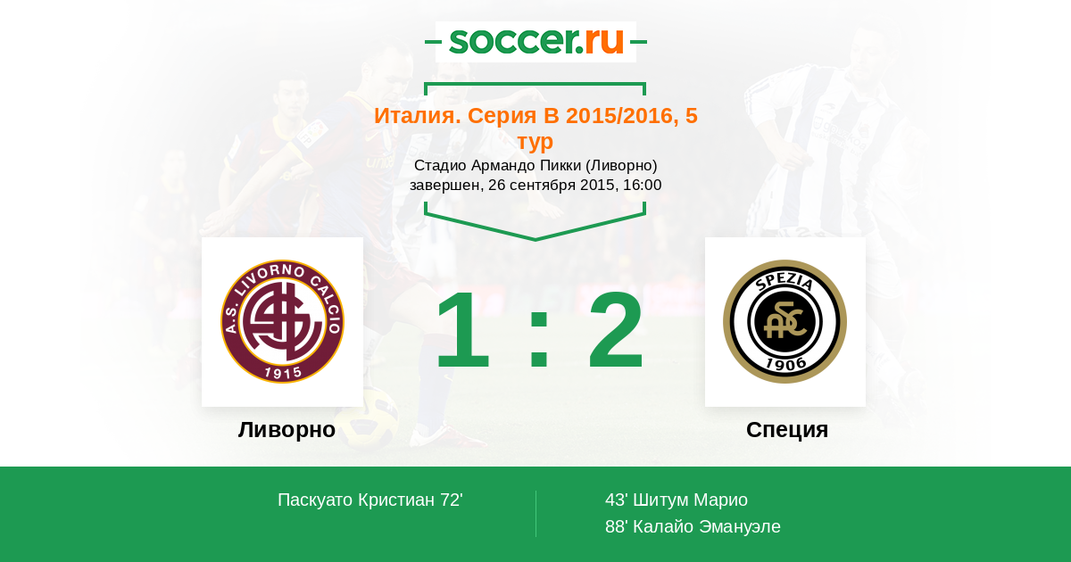Протокол матча Ливорно против Специя