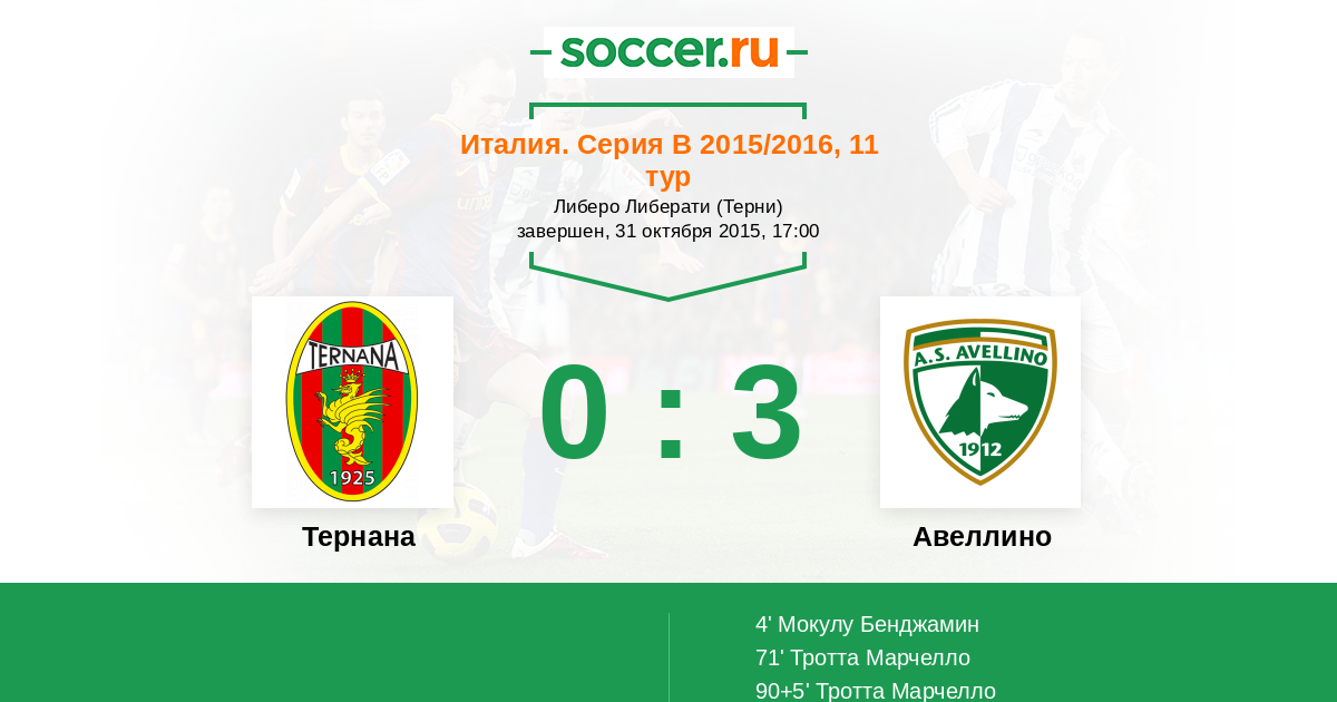 Протокол матча Тернана против Авеллино