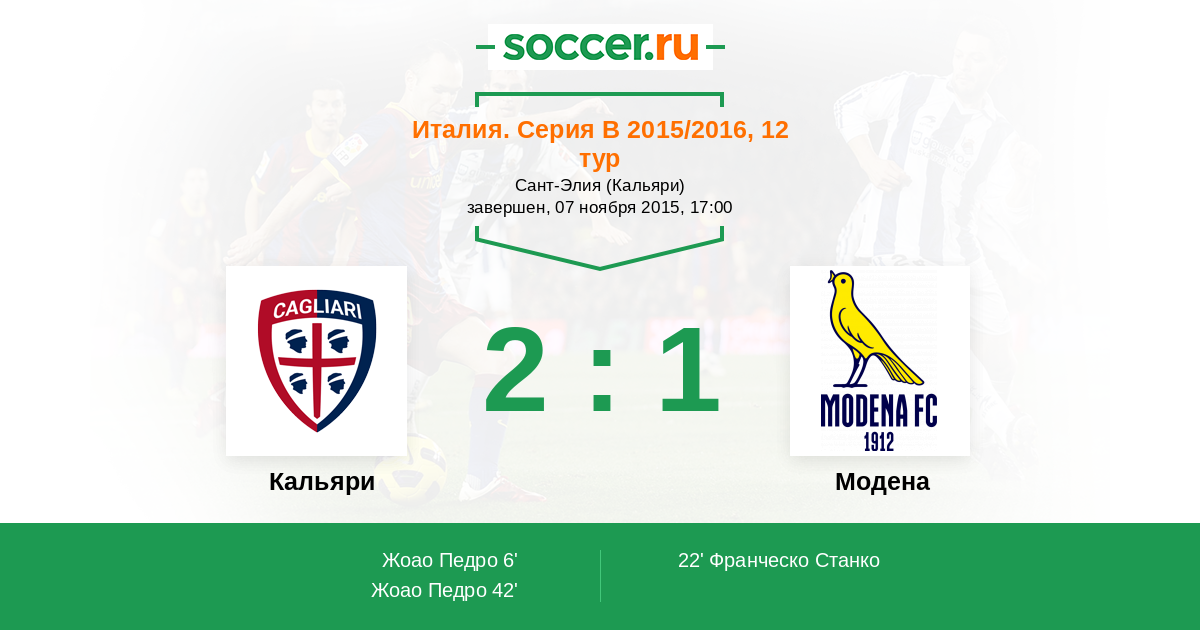 Протокол матча Кальяри против Модена