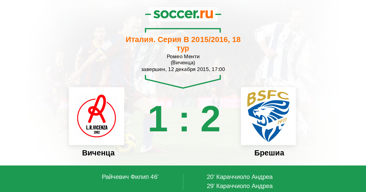 Протокол матча Виченца против Брешиа