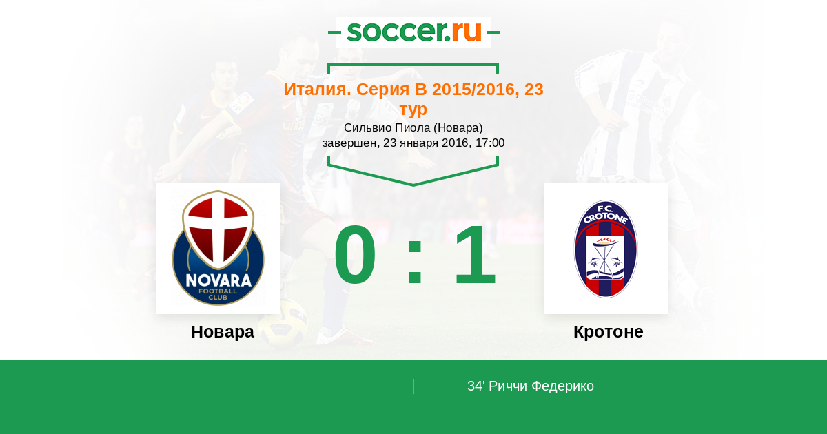 Протокол матча Новара против Кротоне