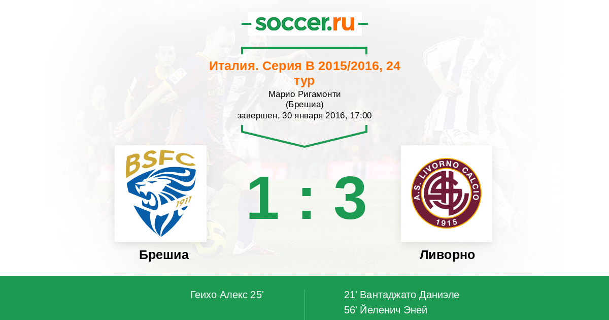 Протокол матча Брешиа против Ливорно