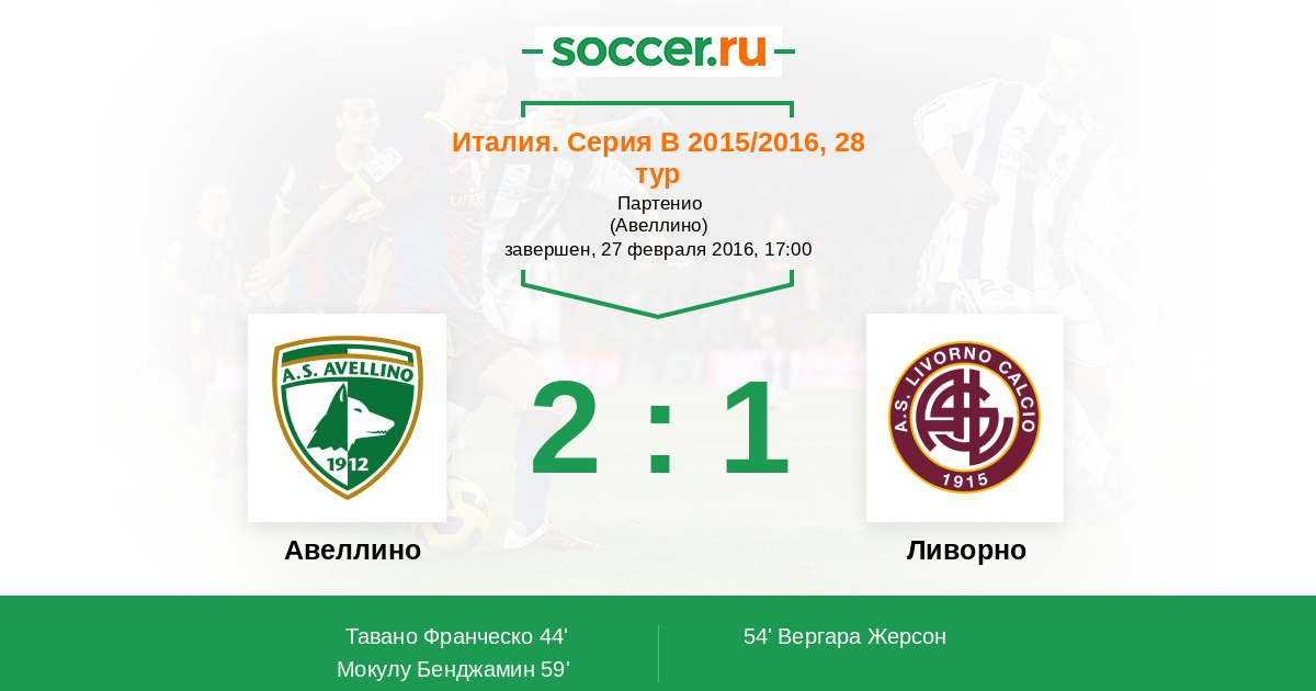 Протокол матча Авеллино против Ливорно