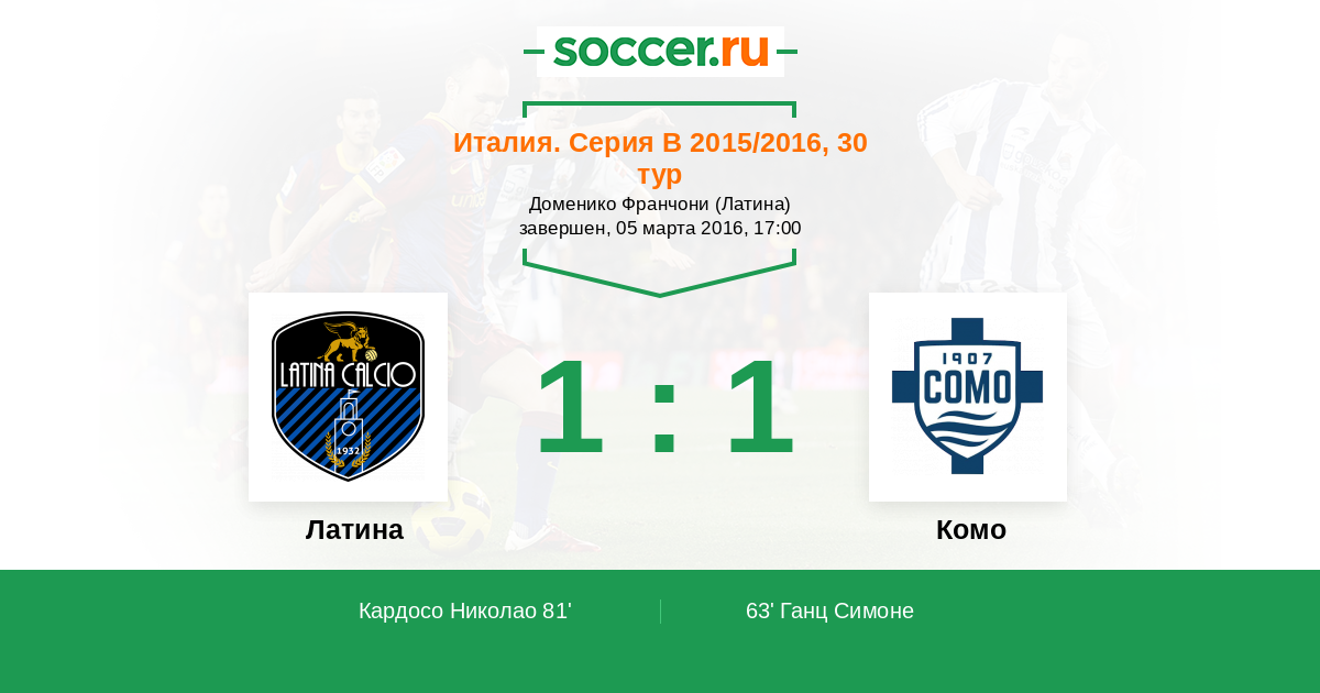 Протокол матча Латина против Комо