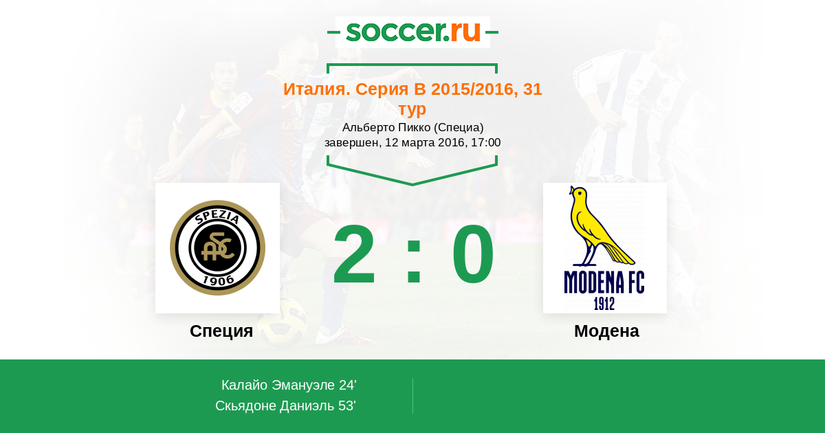 Протокол матча Специя против Модена