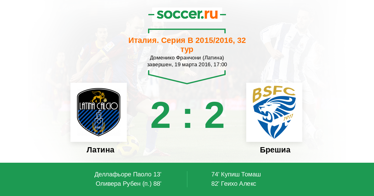 Протокол матча Латина против Брешиа