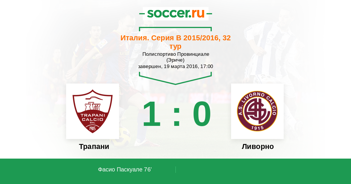 Протокол матча Трапани против Ливорно