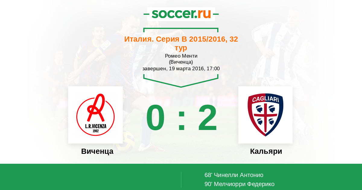 Протокол матча Виченца против Кальяри