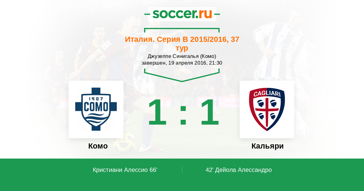 Протокол матча Комо против Кальяри