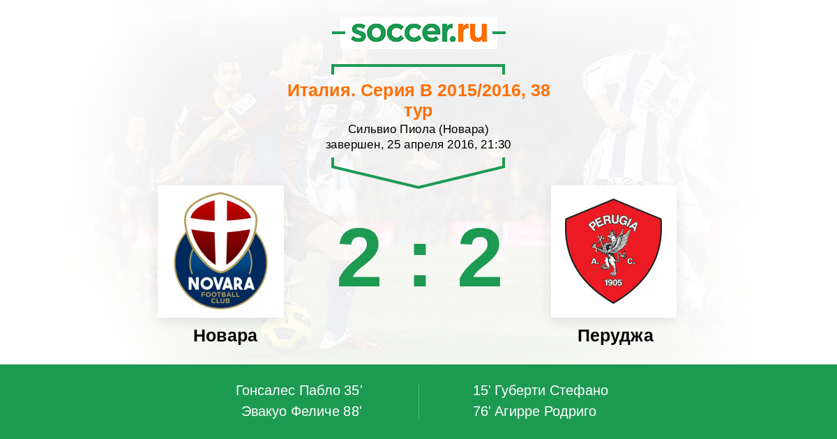 Протокол матча Новара против Перуджа