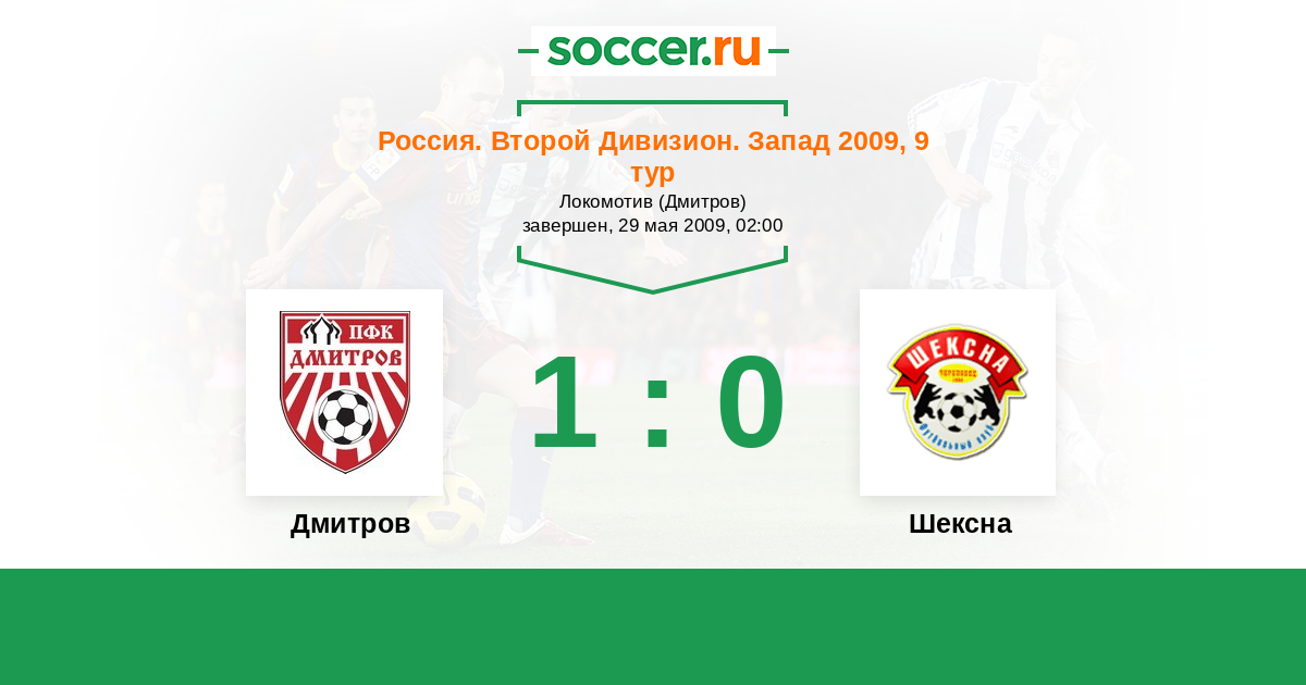 Россия. Вторая лига. Группа 2 10.09.2009 Шексна Логотип футбольный клуб Шексна (Череповец) 1:3 Логотип футбольный клуб Дмитров Дмитров
