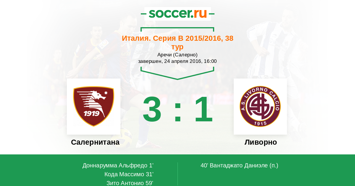 Протокол матча Салернитана против Ливорно