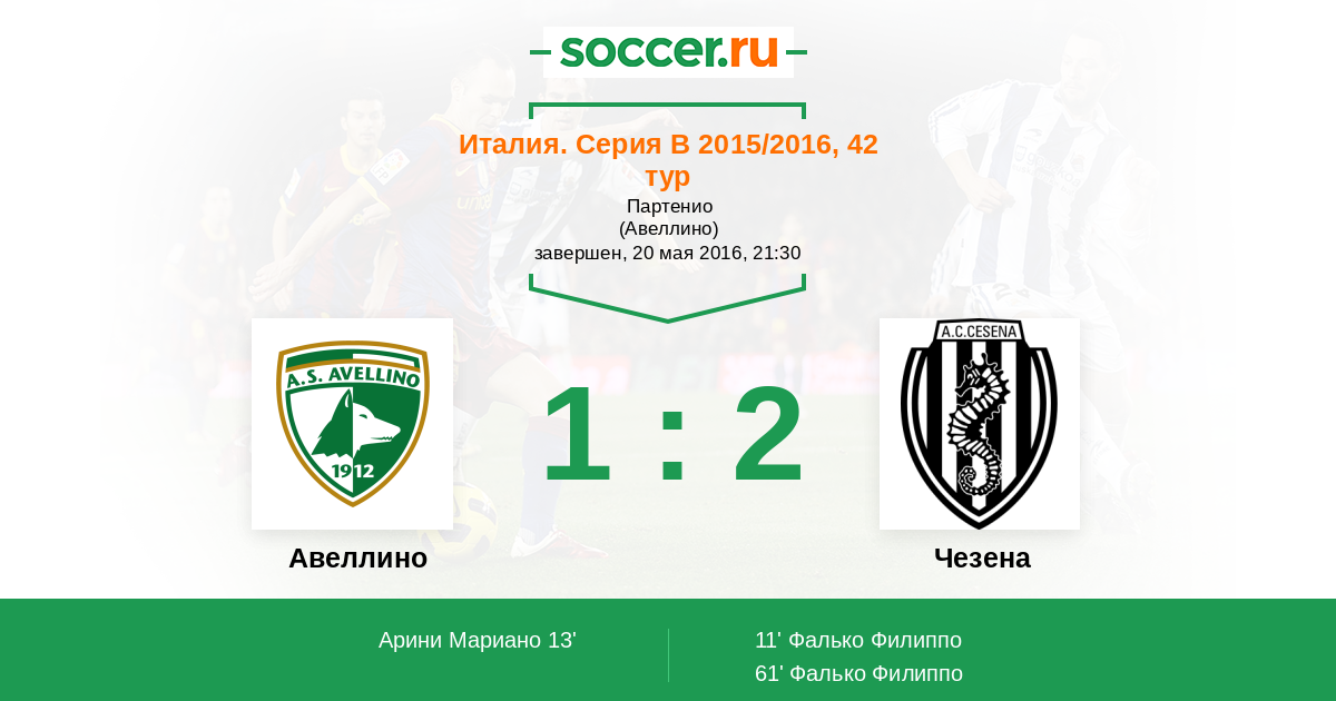 Протокол матча Авеллино против Чезена