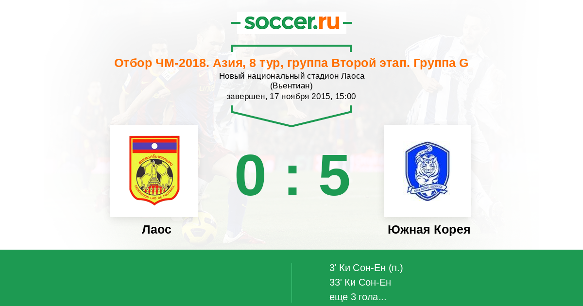 Протокол матча Лаос против Южная Корея