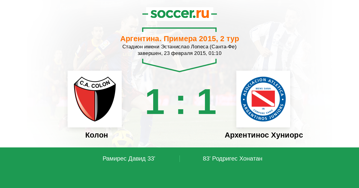 33' (1:0) Рамирес Давид (10) (Вильярруель Густаво (7))
