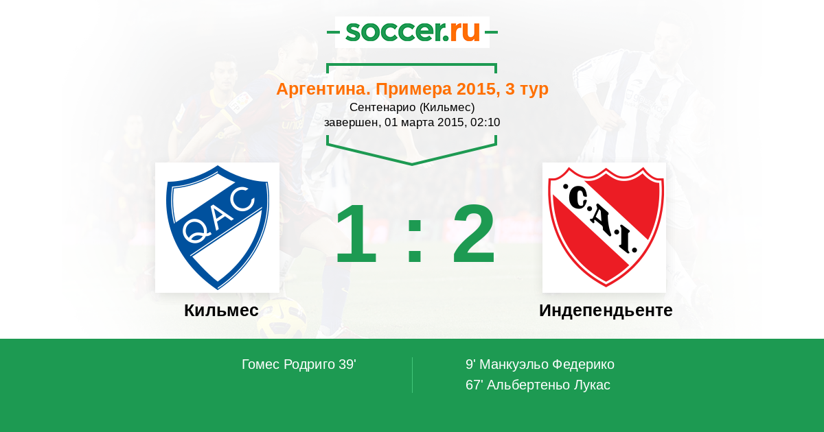 9' (0:1) Манкуэльо Федерико (11) (Писано Матиас (32))