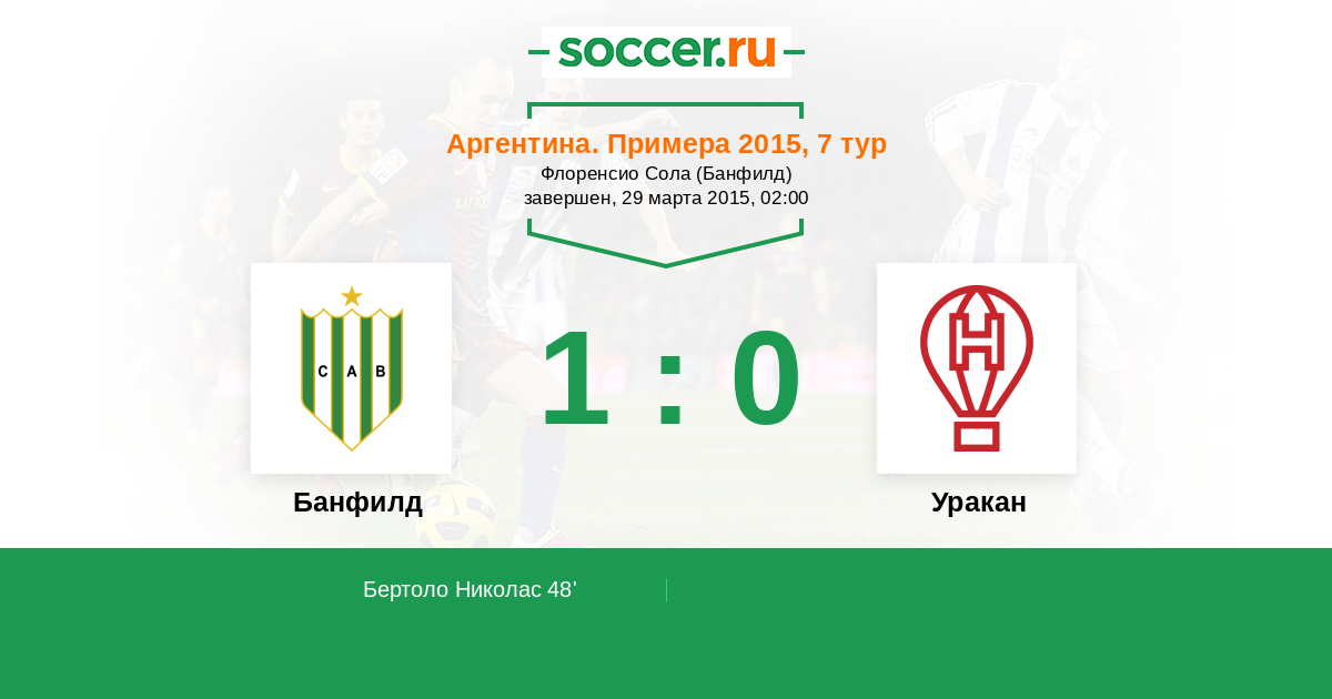 Протокол матча Банфилд против Уракан