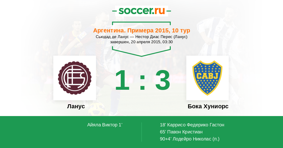 65' (1:2) Павон Кристиан (14) (Освальдо Пабло (23))