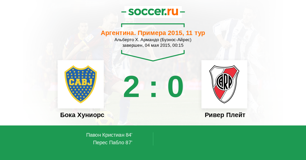 Протокол матча Бока Хуниорс против Ривер Плейт