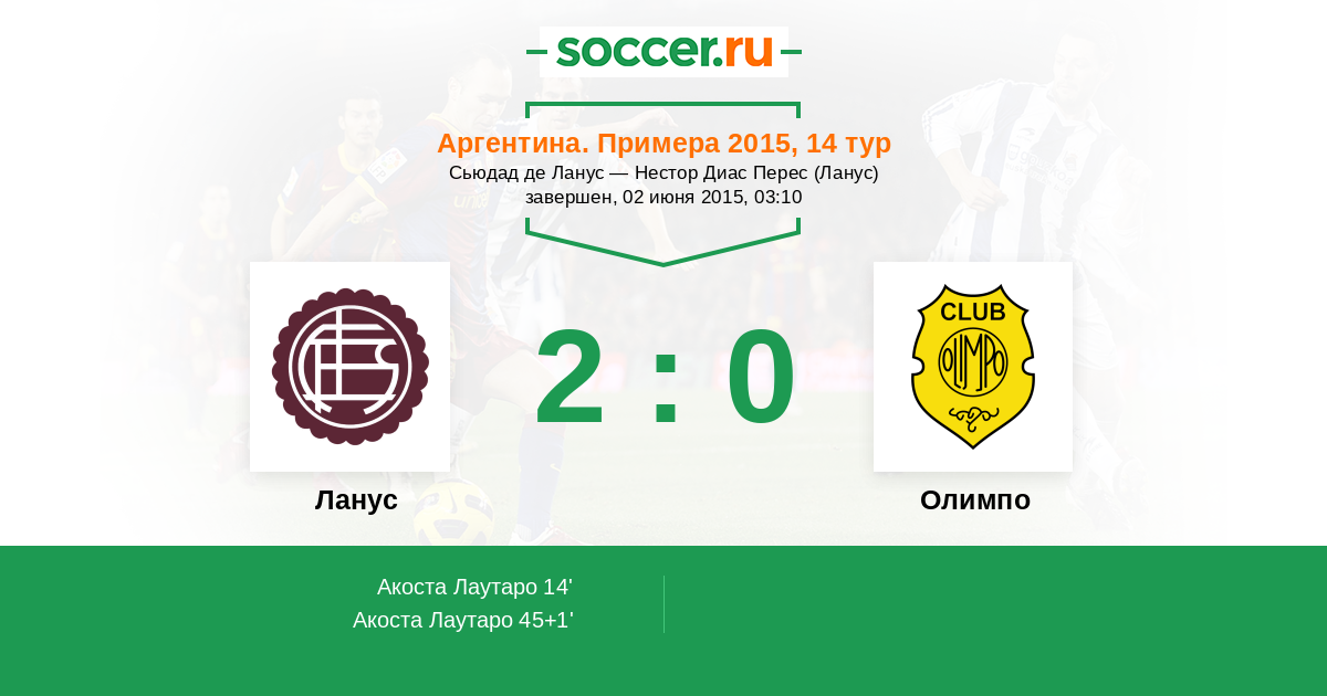 Протокол матча Ланус против Олимпо