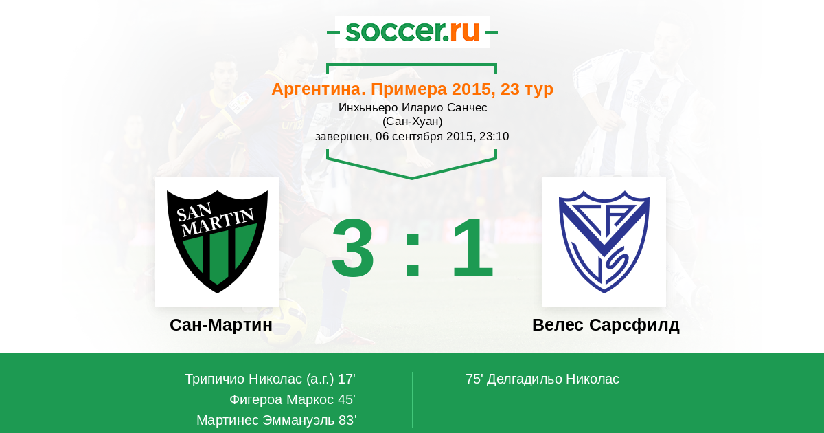Протокол матча Сан-Мартин против Велес Сарсфилд