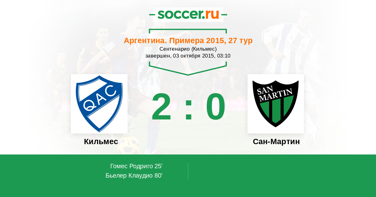 Протокол матча Кильмес против Сан-Мартин