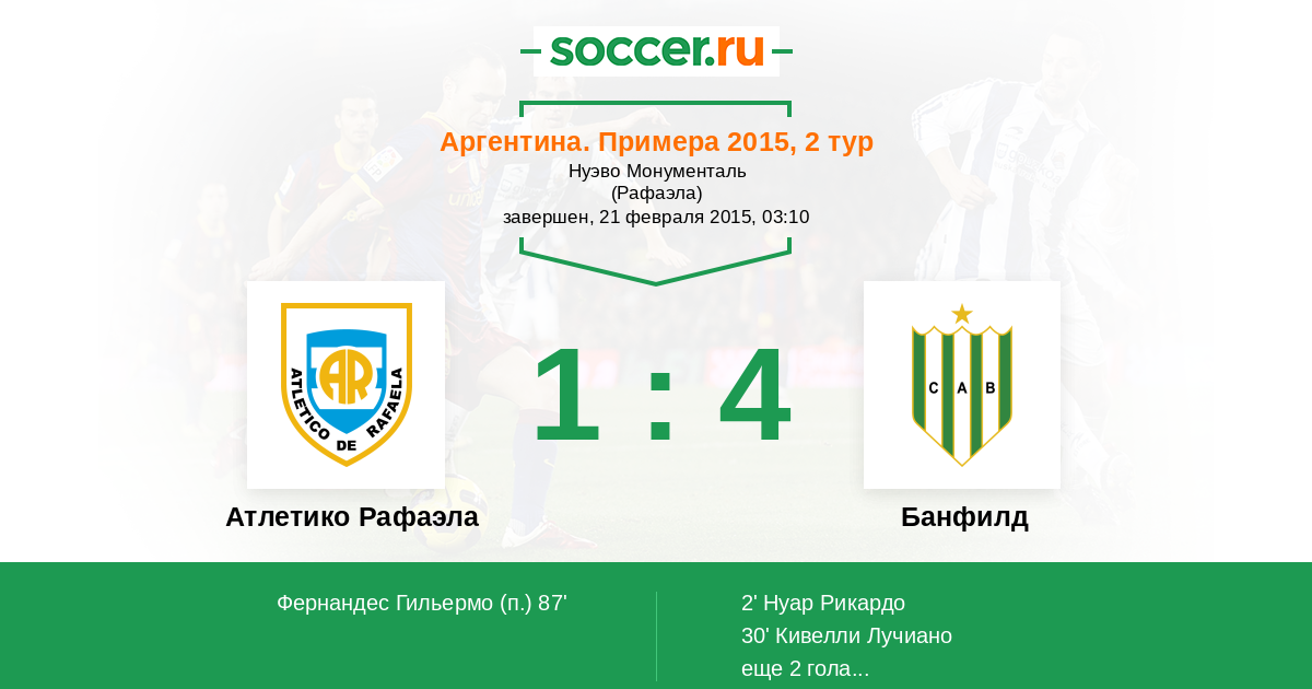 Протокол матча Атлетико Рафаэла против Банфилд