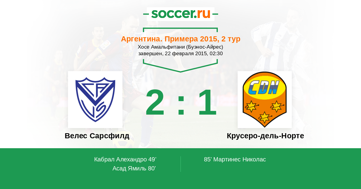 Протокол матча Велес Сарсфилд против Крусеро-дель-Норте