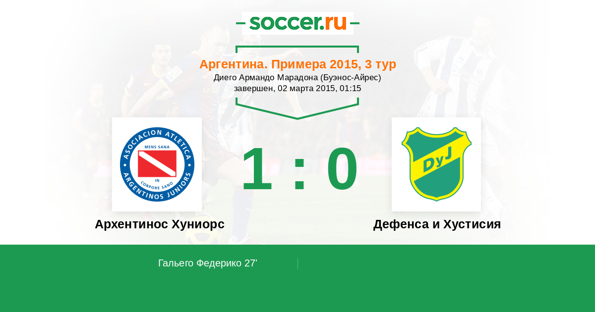 Протокол матча Архентинос Хуниорс против Дефенса и Хустисия