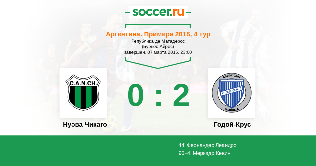 Протокол матча Нуэва Чикаго против Годой-Крус