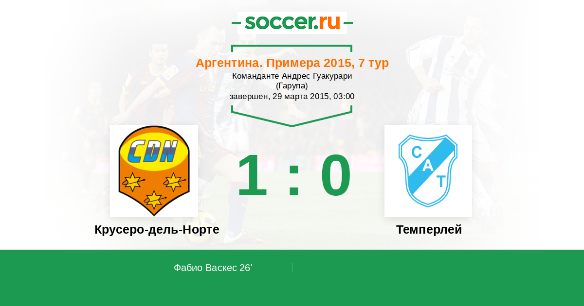 Протокол матча Крусеро-дель-Норте против Темперлей