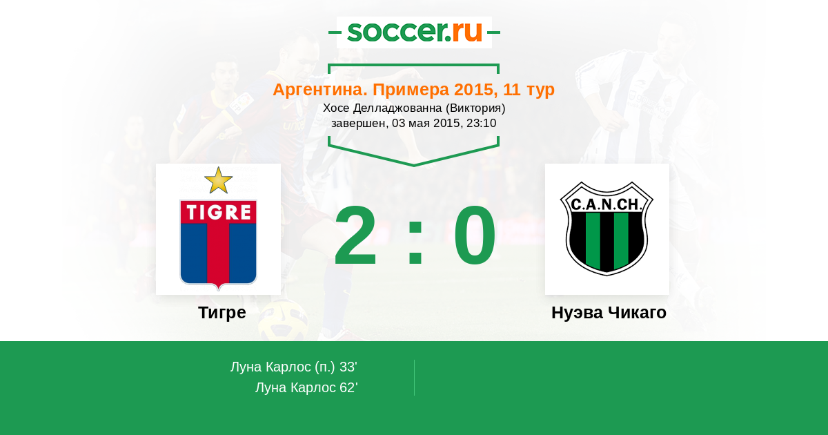 Протокол матча Тигре против Нуэва Чикаго
