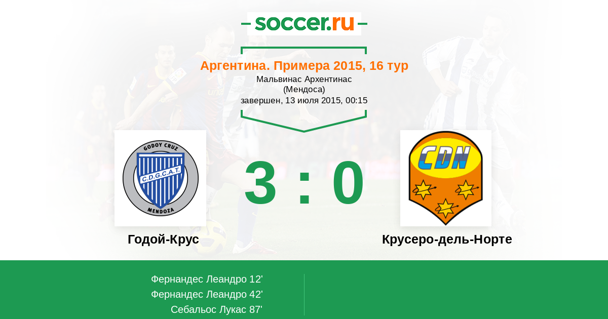 Протокол матча Годой-Крус против Крусеро-дель-Норте