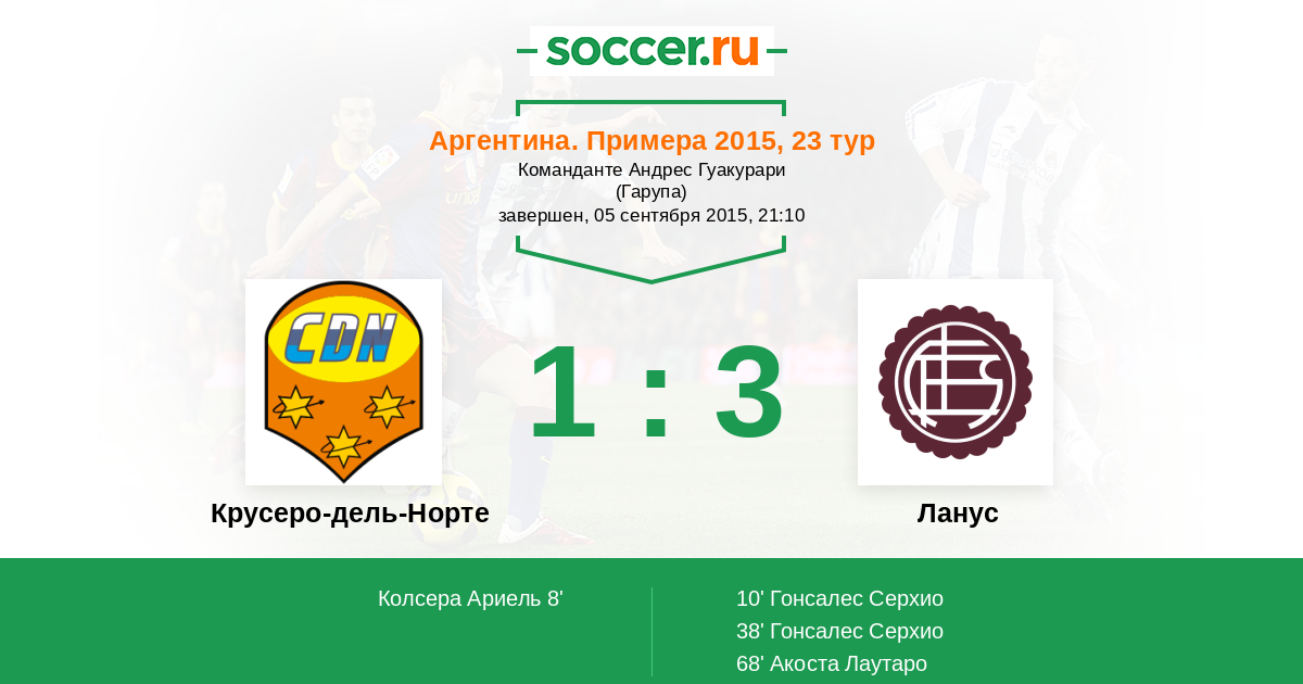 Протокол матча Крусеро-дель-Норте против Ланус