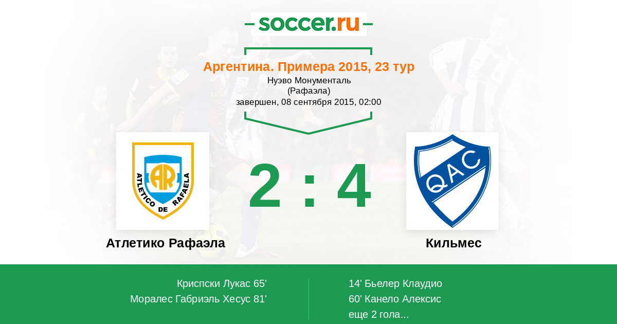 Протокол матча Атлетико Рафаэла против Кильмес