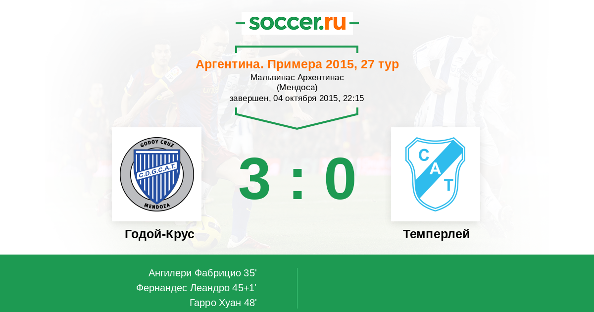 Протокол матча Годой-Крус против Темперлей