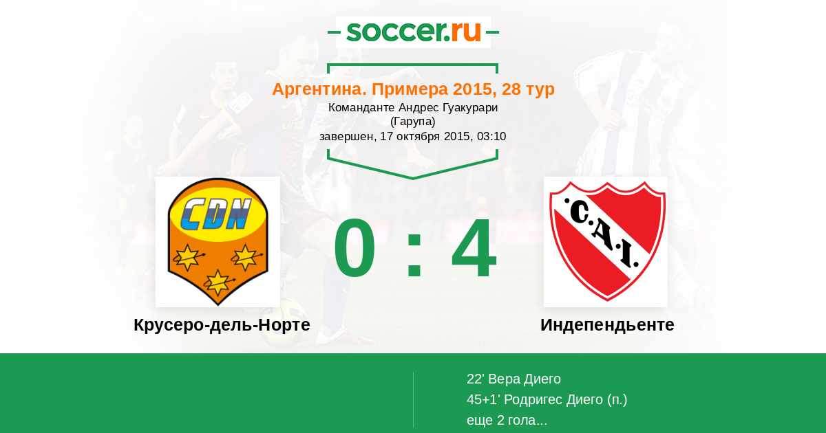 Протокол матча Крусеро-дель-Норте против Индепендьенте