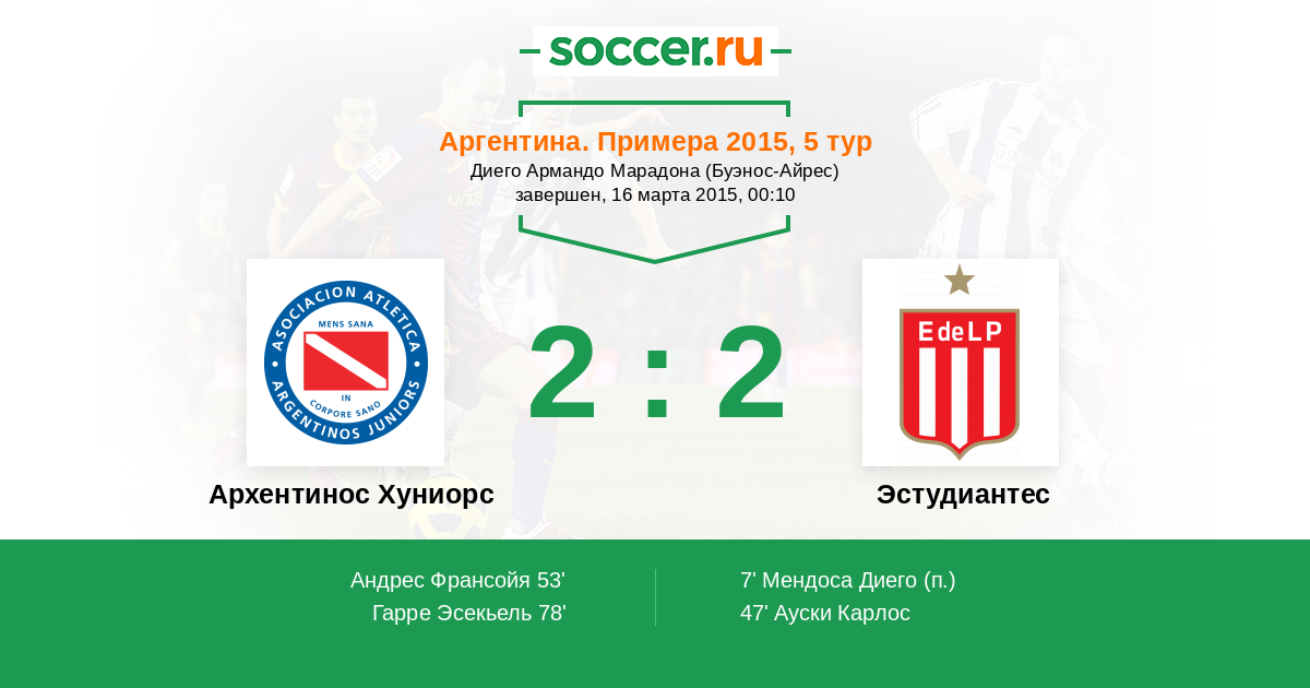 Протокол матча Архентинос Хуниорс против Эстудиантес