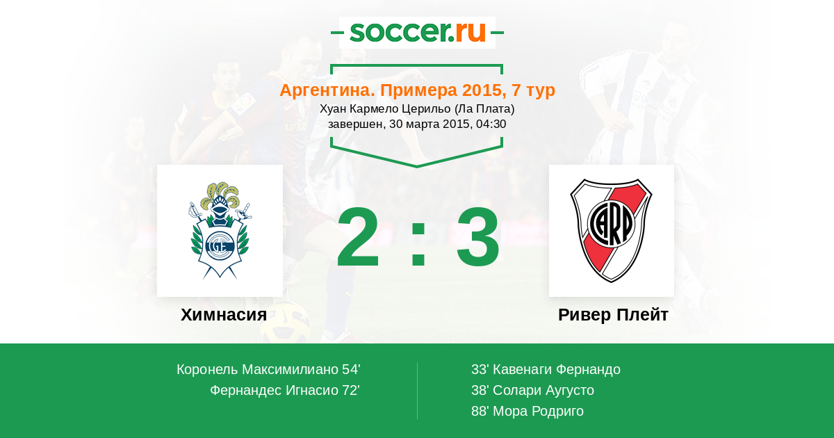 54' (1:2) Коронель Максимилиано (23) (Фернандес Игнасио (8))