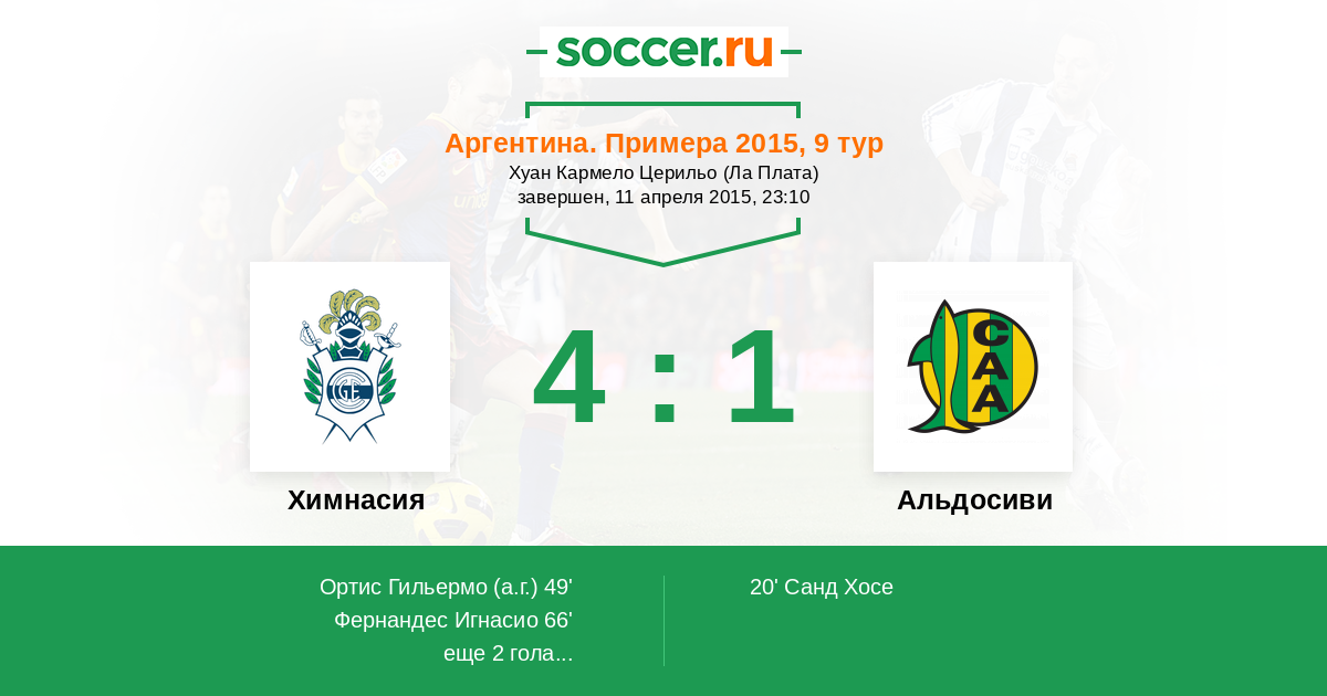Протокол матча Химнасия против Альдосиви