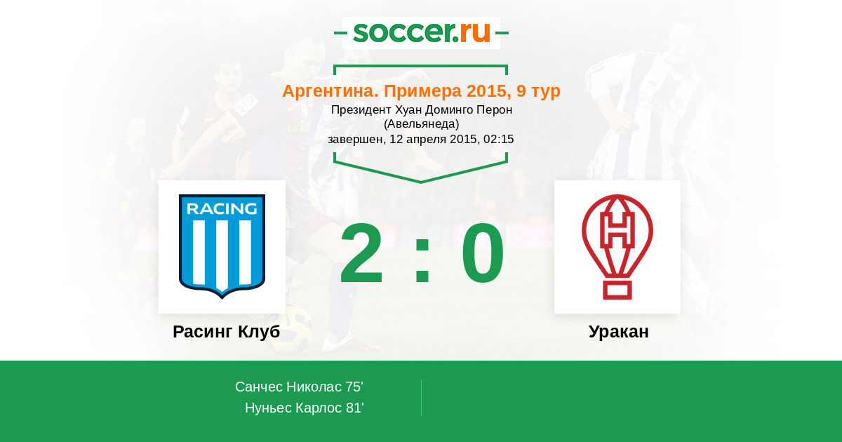 Протокол матча Расинг Клуб против Уракан