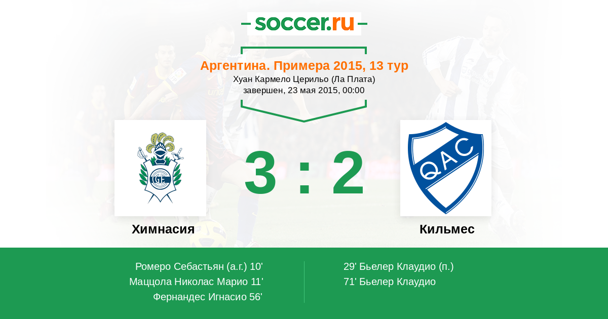 Протокол матча Химнасия против Кильмес