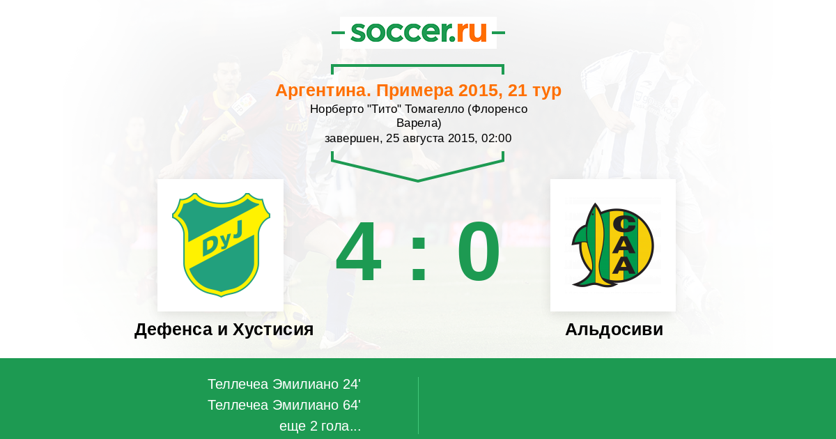 Протокол матча Дефенса и Хустисия против Альдосиви